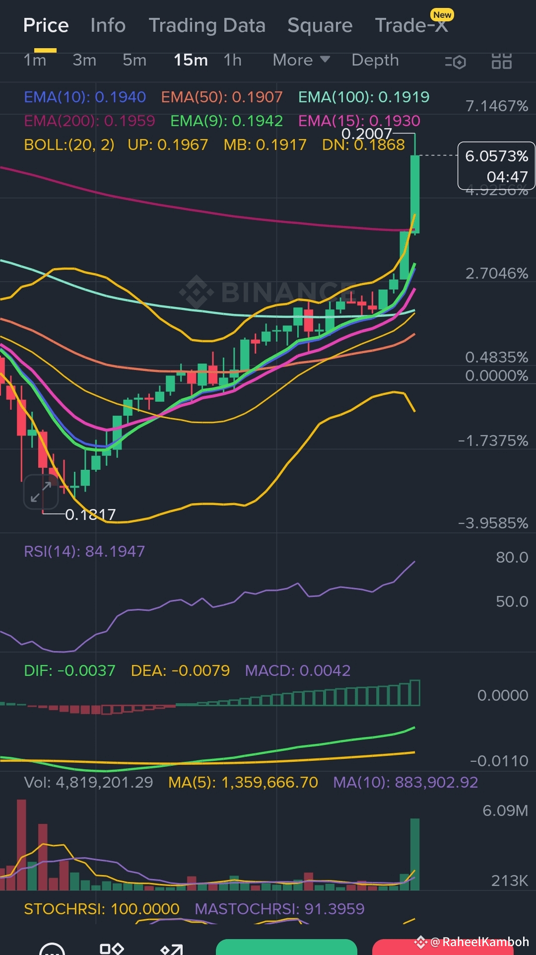 · Candle Patterns: On the lower timeframes (5m/15m), watch for a BULLISH ENGULFING candle above 0.2020 or a BEARISH ENGULFING candle below 0.1950 to confirm the next direction.