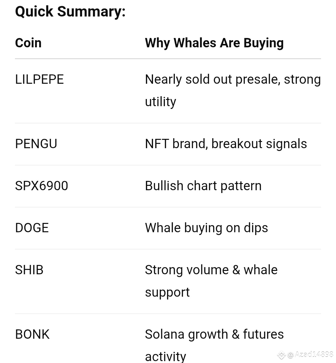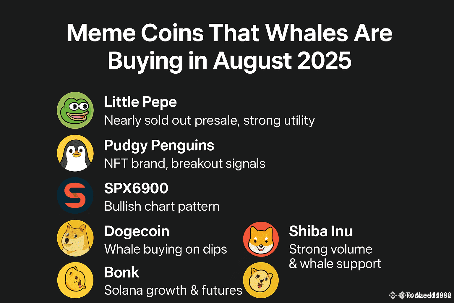 In August 2025, big investors (whales) are snapping up certain meme coins in large amounts. This highlights coins with strong demand and potential growth. Here are the top 6 meme coins: