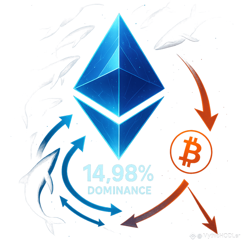 ETH Dominance: 14.98% (highest since Sept 2024)