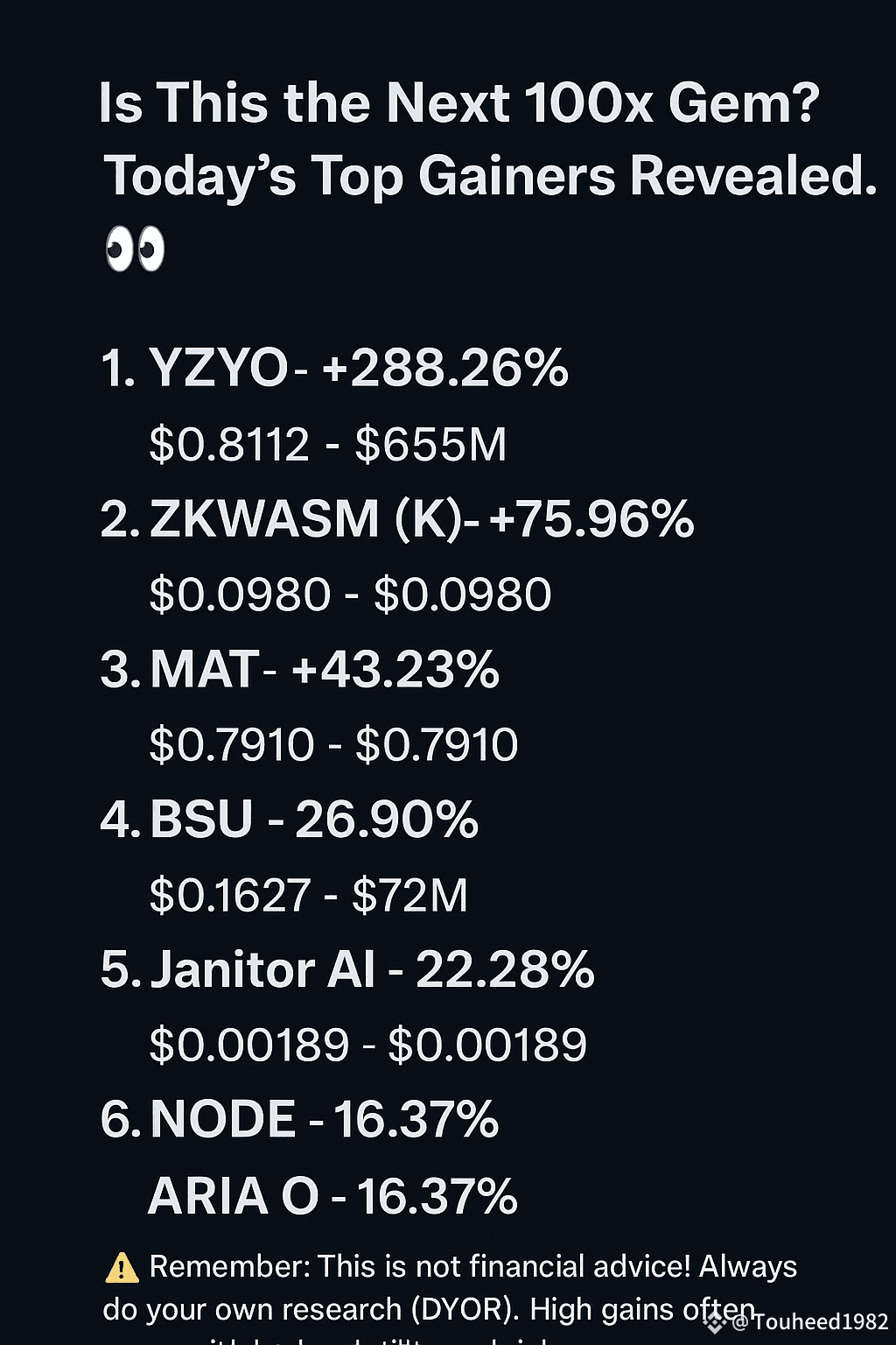 ⚠️ Reminder: Not financial advice (NFA). Always DYOR. Big pumps = big risks.