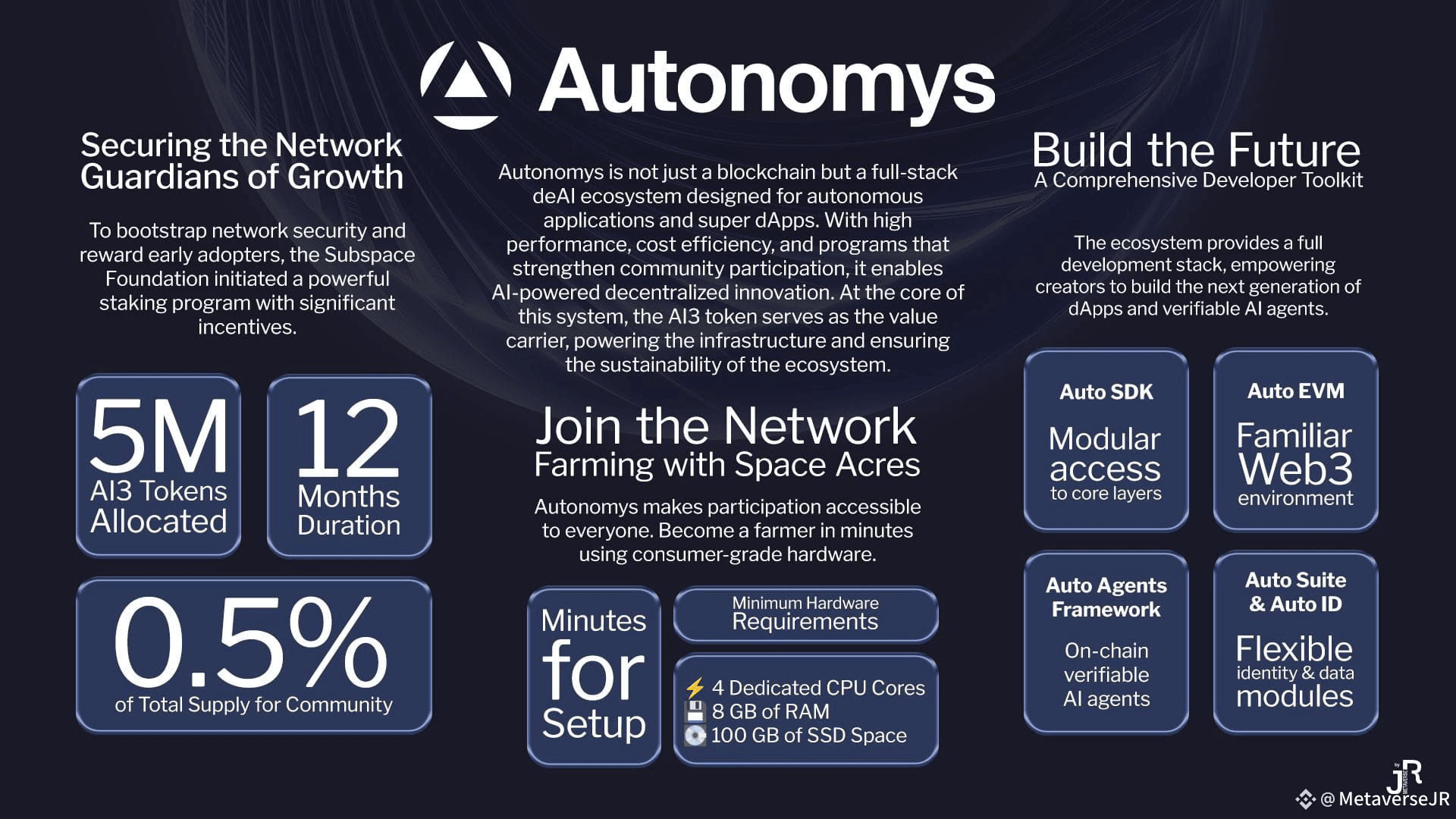 Autonomys is defined as an artificial intelligence-oriented ecosystem (#DeAI ). In other words, it is not just a blockchain; it is a full-layered infrastructure designed for autonomous applications and super dApps. The platform brings together key components that enable AI-powered decentralized innovation with high performance and cost efficiency in mind. Not only the technical aspects of this infrastructure, but also the programs to strengthen community engagement early on are noteworthy.