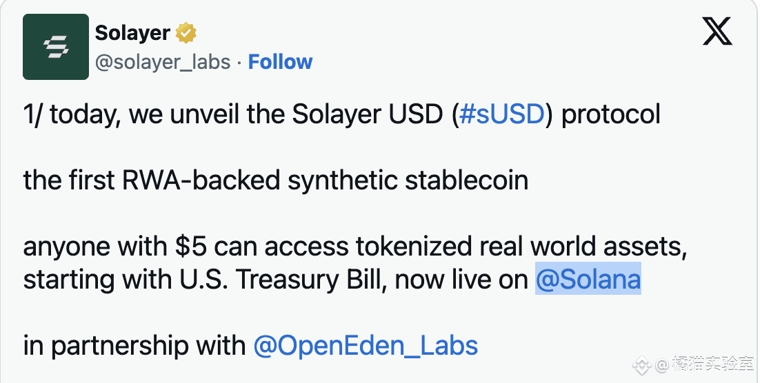 sUSD 的推出,不仅是 Solana 上 RWA 的关键突破,也让 Solayer 成为 加密与传统金融之间的桥梁。