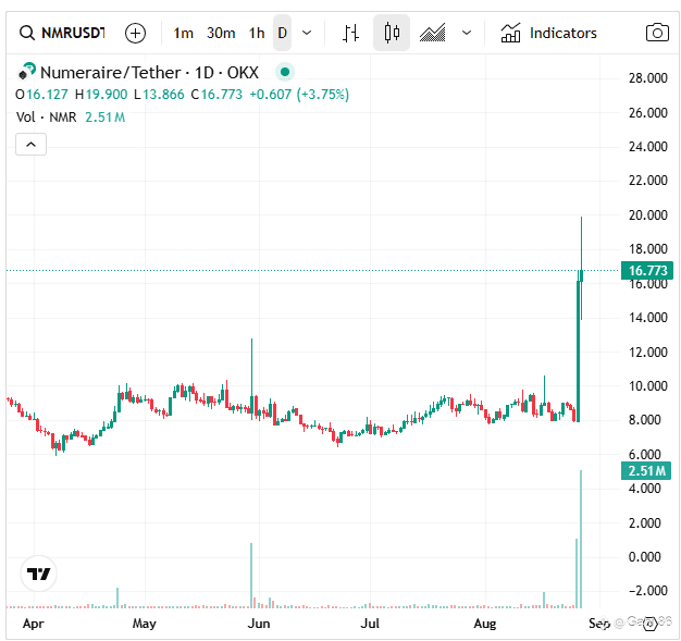 Ai mercati però non sembra interessare: è bastato associare il nome di NumerAI a JP Morgan, uno degli allocator più importanti al mondo, per spingere il prezzo del token al doppio del valore delle 24 ore precedenti.