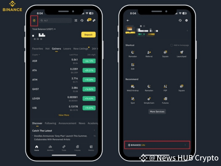 Tap on the top left corner of your home screen, you’ll see Binance Lite written at the bottom