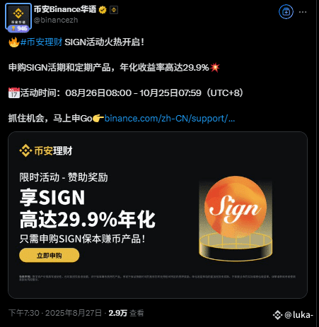 其实也建议大家,没有投资方向就定投 $SIGN ,从开盘以来几乎没有跌下0.06过,而且按照团队的做事能力完全不需要担心,团队已完成 1200 万美元 SIGN 回购。 社区成员大部分都选择质押,包括我,定投+质押,我认为适合所有人,在官网质押是10%的年化,刚刚还推出了在币安的理财质押是29.9%的年化,根本不知道怎么输。