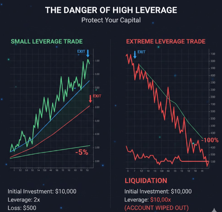 Example: Using 10x leverage means a 10% price move against you could erase your entire trade.