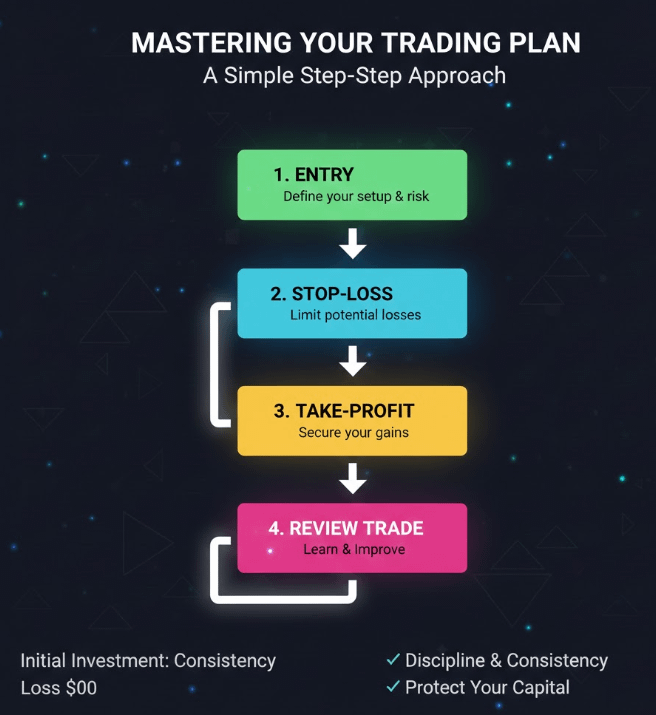 A trade plan defines entry, exit, and risk limits before you even open a position.
