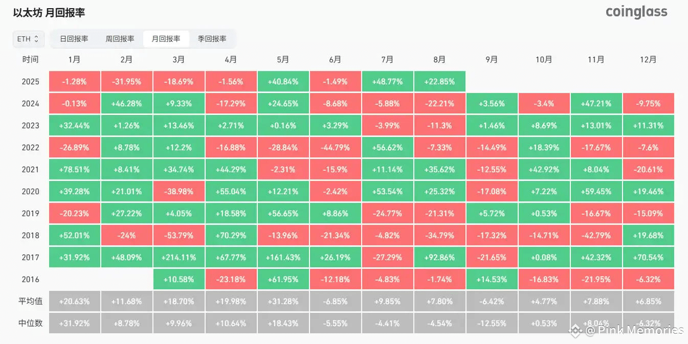 历史上,以太坊仅在 2017、2020 和 2021 年 8 月录得上涨。