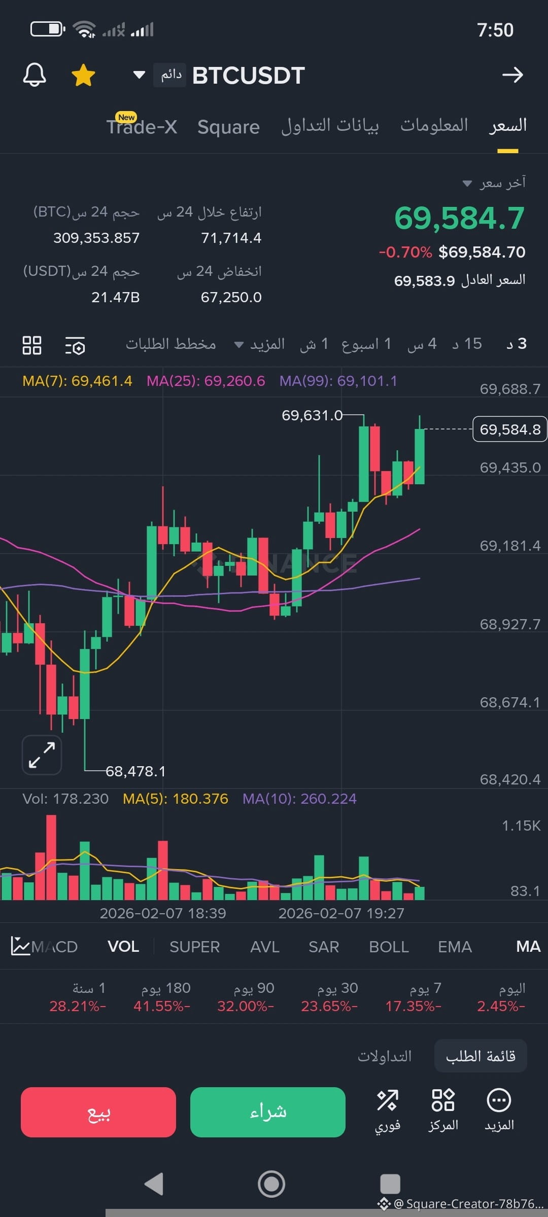 حسب Binance وTradingView: قريب من 69,200 إلى 69,400 دولار.