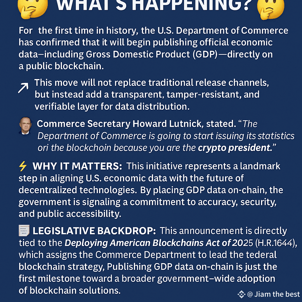 For the 1st time ever, the U.S. Commerce Dept. will publish official GDP data on a public blockchain.