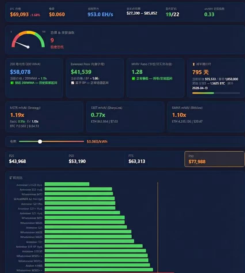 2. 硬核成本支撑: 当前 S19 XP 等主流矿机的关机价区间在 $55,172 - $61,657。