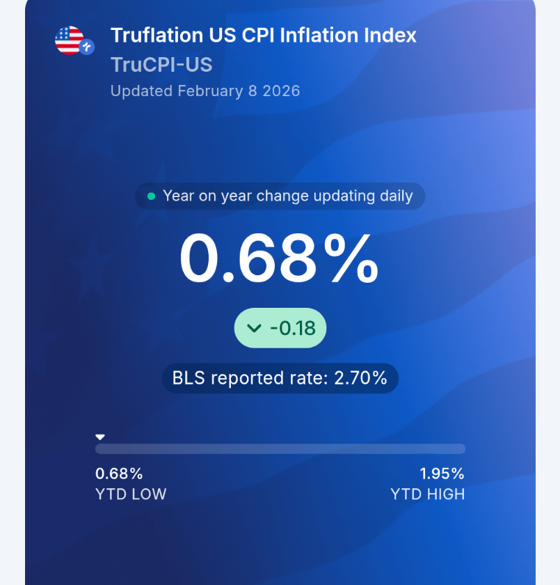 The Fed continues to say inflation is still sticky and not fully under control. But real time inflation trackers like Truflation are now showing inflation running close to 0.68%.