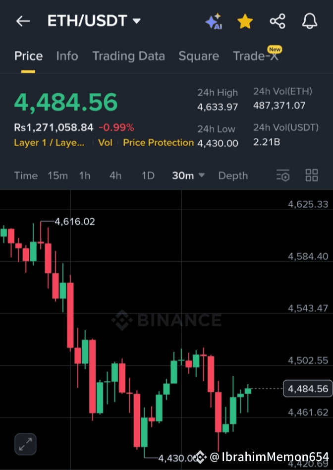 ($ETH ) is facing a pullback, currently trading at $4,484.56.