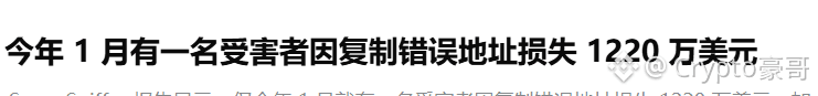 一名受害者仅因复制转账地址时出现错误,直接损失 1220 万美元资产。