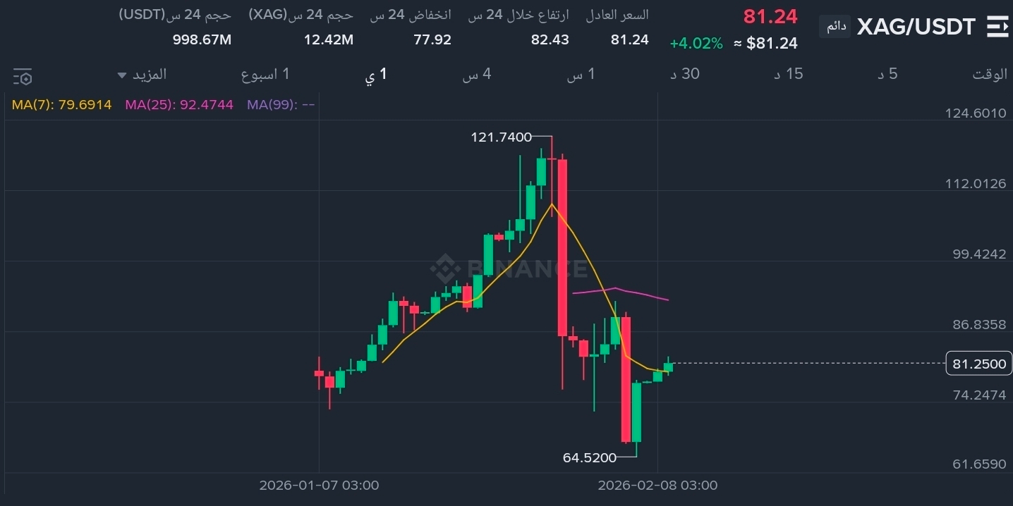 الفضة، بطبيعتها، أكثر حساسية وأعلى مخاطرة من الذهب. لذلك كانت حركتها أكثر حدّة، سواء في الصعود أو الهبوط. الانخفاض العنيف من القمم المرتفعة حتى مناطق قريبة من 64 لا يمكن فهمه بمعايير الضعف، بل ضمن سياق تصفية مفرطة للسيولة وضرب جماعي لأوامر الوقف.