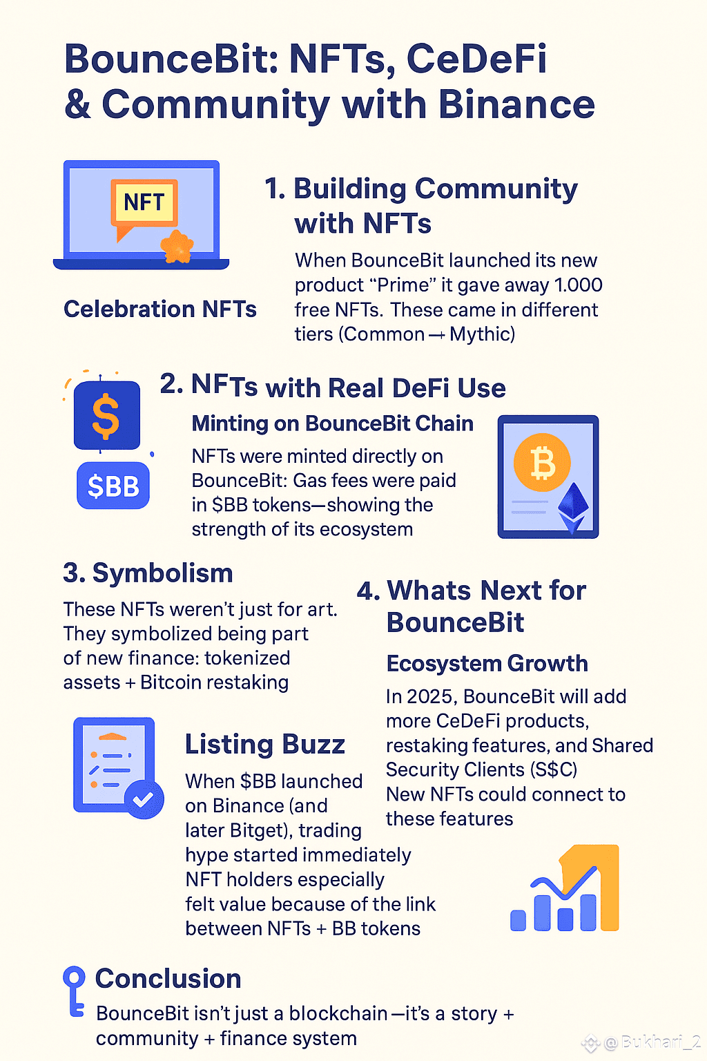 #BounceBit is the first Bitcoin restaking chain that mixes CeFi (Centralized Finance), DeFi (Decentralized Finance), and NFTs (digital collectibles). With Binance’s support, BounceBit is building not just a financial protocol but a community movement.