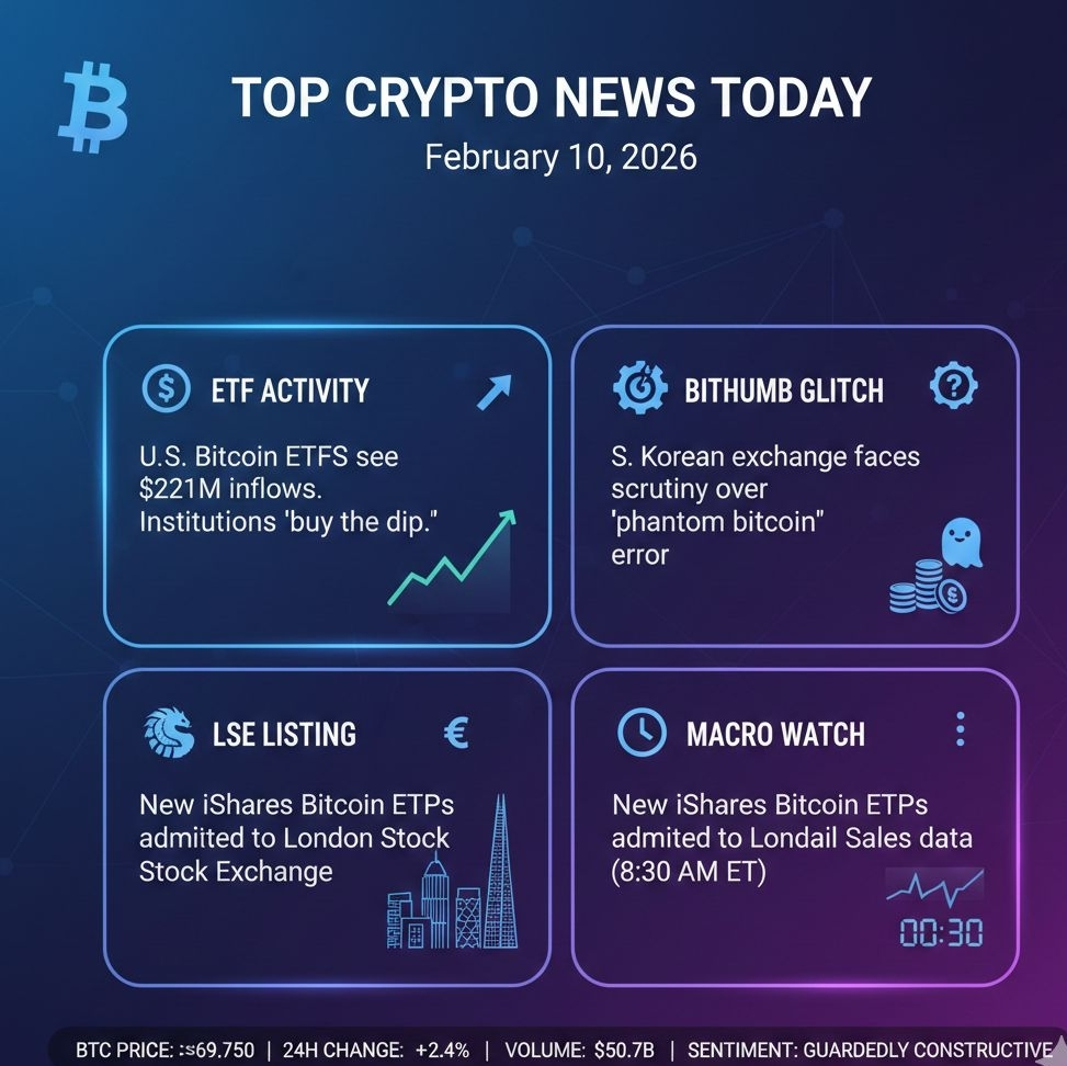 ETF Activity: U.S. Bitcoin $BTC ETFs recorded significant inflows ($221M) as institutional investors "bought the dip."
