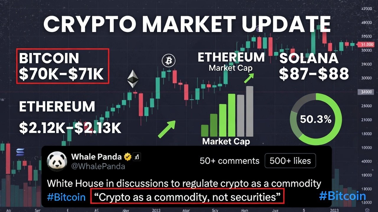 يُظهر سوق العملات الرقمية علامات استقرار بعد تقلباتٍ شهدها مؤخرًا. يتداول البيتكوين (BTC) اليوم عند حوالي 70,000-71,000 دولار أمريكي، متعافيًا من أدنى مستوياته التي تجاوزت 69,000 دولار أمريكي في وقت سابق من الأسبوع. وقد انخفض بشكل طفيف (0.5-1%) خلال الـ 24 ساعة الماضية، ولكنه لا يزال فوق مستويات الدعم الرئيسية.