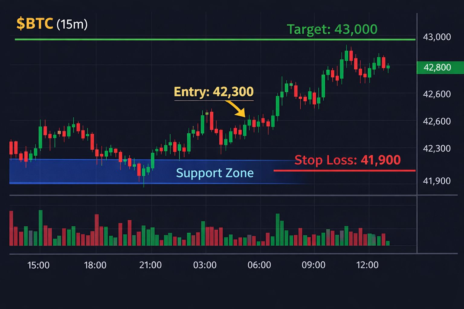 I’m currently watching $BTC on the 15-minute candle chart.