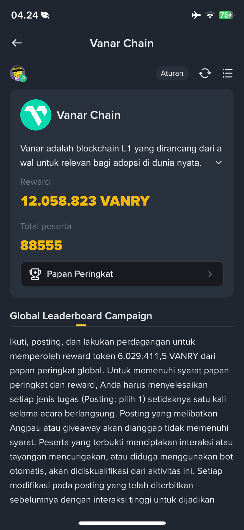 Selama periode kampanye, jumlah transaksi minimum untuk satu perdagangan VANRY adalah setara 10 USD dalam bentuk token VANRY. Makin besar jumlah transaksi, makin banyak poin yang bisa Anda dapatkan. Untuk mendapatkan informasi selengkapnya, silakan lihat pengumuman resmi.#VANRYUSDT #VANRY #VANRYTrading #VanarChain