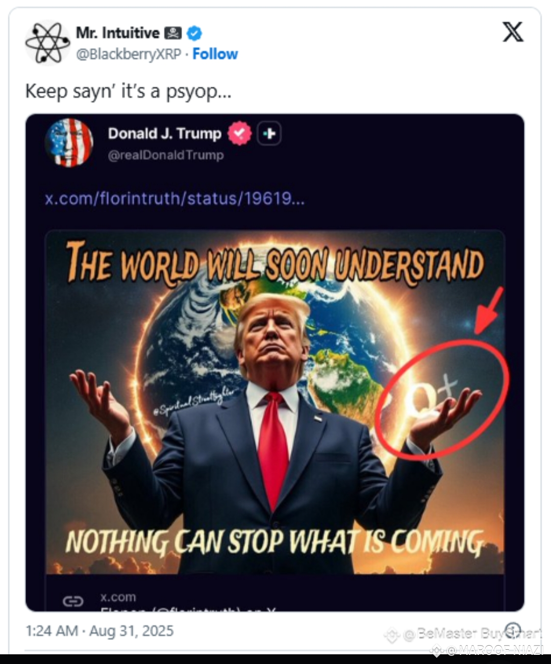 While there has been no official confirmation linking Trump’s post to XRP, the image’s inclusion of what it appeared to be the XRP symbol, combined with the phrase “Nothing can stop what is coming,” was enough for many XRP supporters to view it as relevant.