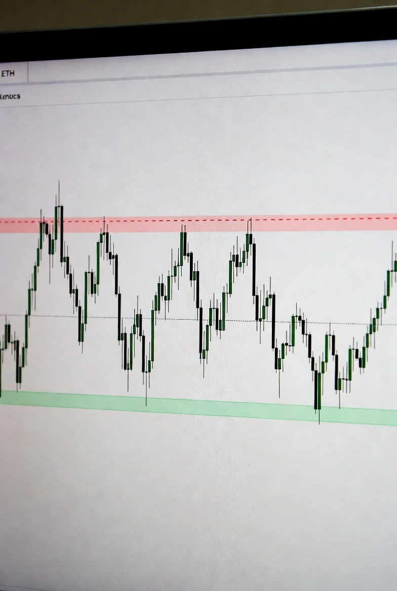画支撑线: 如果你发现有两个或更多的 K 线,最低点都打到了同一个价格附近(比如 $ETH 的 2200),就在那里画一条横线。