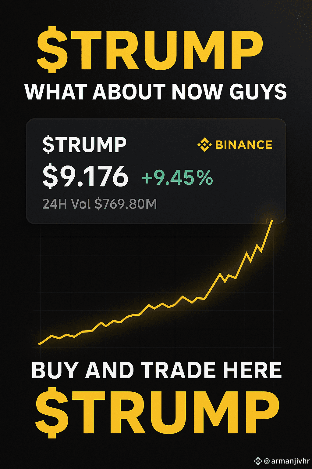 $TRUMP has broken above the $9 mark, now trading at $9.176, gaining +9.45% in the last 24H. Trading activity remains hot with a massive $769.80M volume fueling the move.