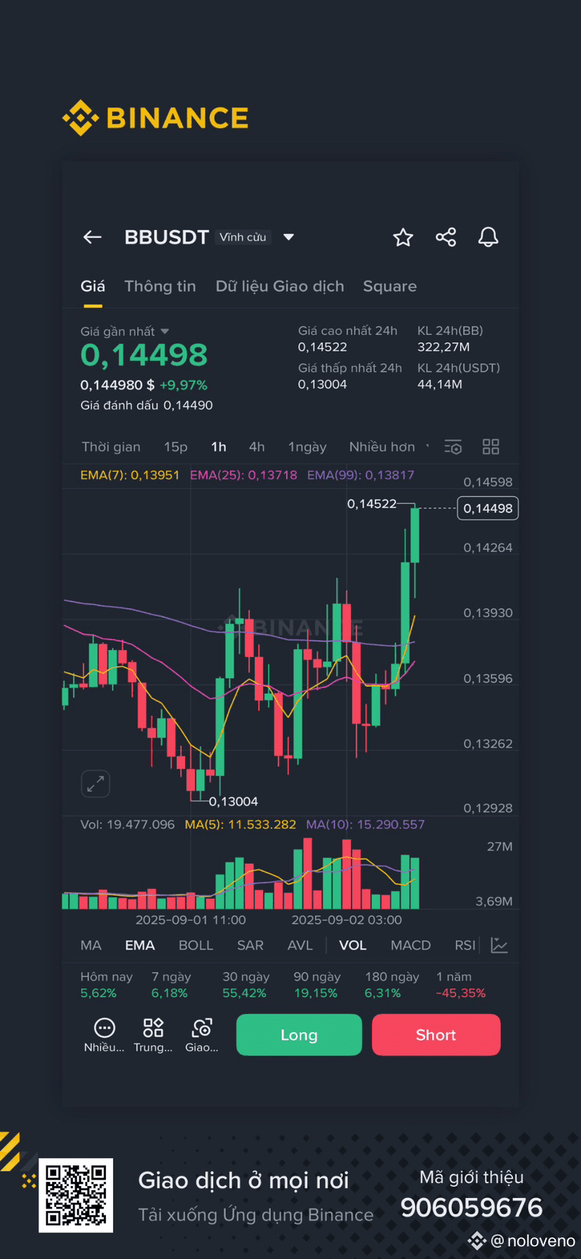 > * Mốc quan trọng: Cần theo dõi sự phá vỡ trên ngưỡng 0.1455. Vượt qua mốc này có thể kích hoạt các mục tiêu giá cao hơn.