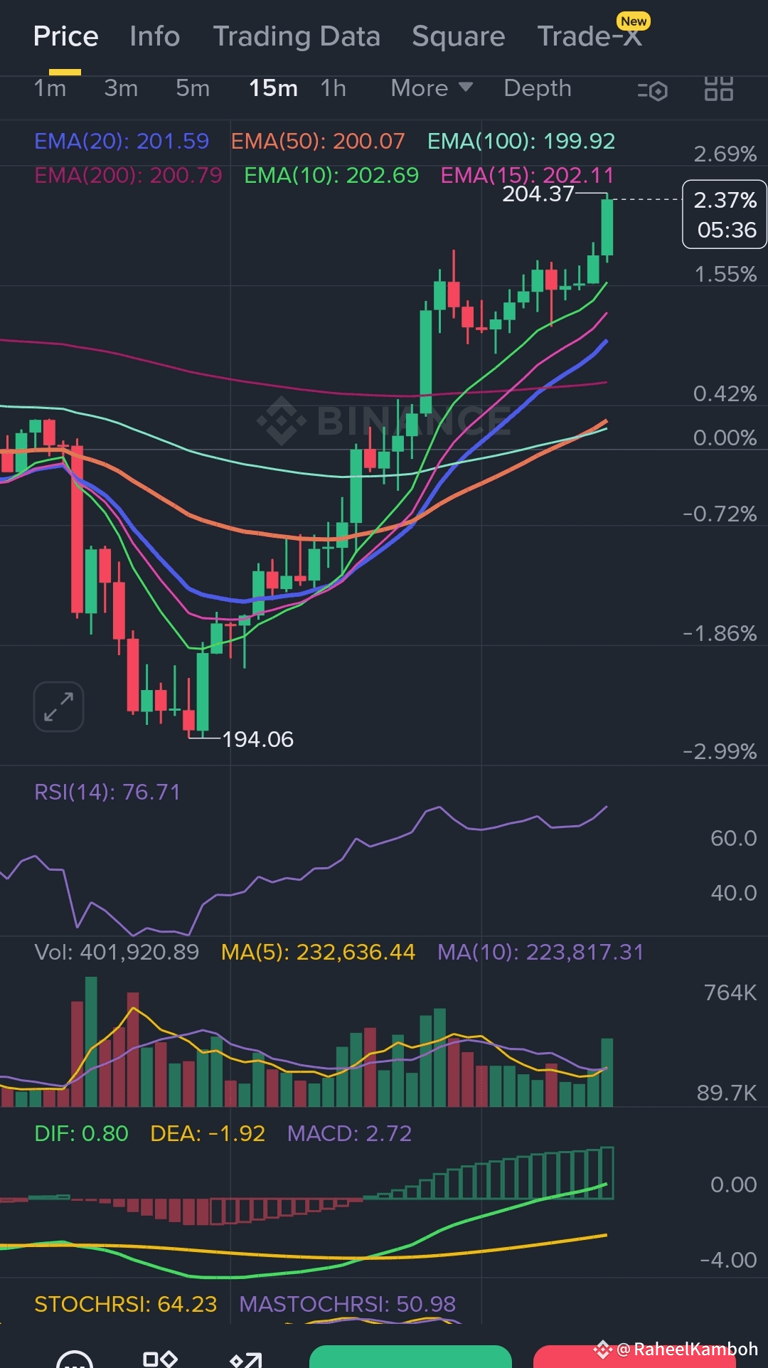 · Stop Loss: $199.5 (A break below the key EMA cluster and triangle support invalidates the setup.)