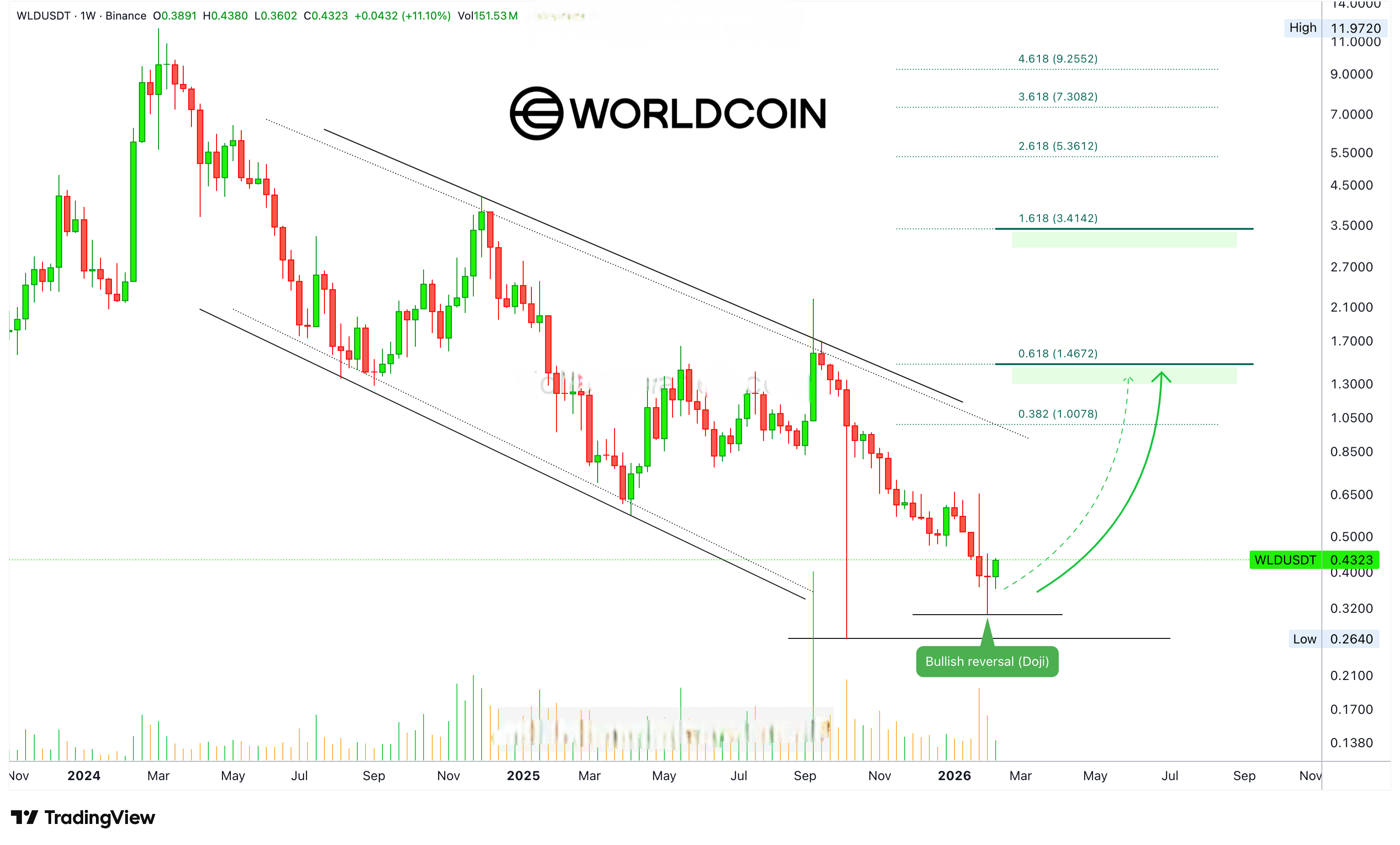 نهاية الاتجاه الهبوطي تعني بداية مرحلة جديدة في السوق. هذه المرحلة الجديدة تعني أن Worldcoin سيتوقف عن الانخفاض؛ يعني أسعار أعلى.