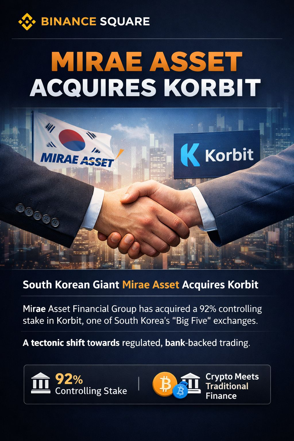 In a landmark move for institutional adoption, Mirae Asset Financial Group has acquired a 92% controlling stake in Korbit, one of South Korea's "Big Five" exchanges. This marks the first time a traditional financial titan has taken direct control of a major crypto exchange, signaling a "tectonic shift" toward regulated, bank-backed trading environments.#SouthKorean #Write2Earn #cryptosignals #BinanceSquare #TradeCryptosOnX