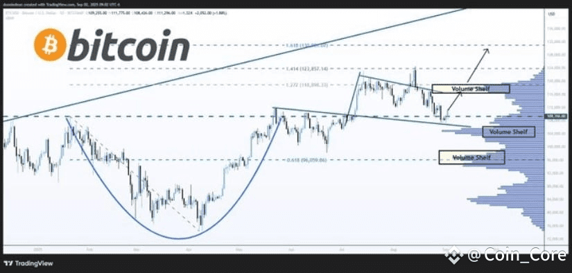 Support: If bulls fail, $108K remains a strong demand zone.