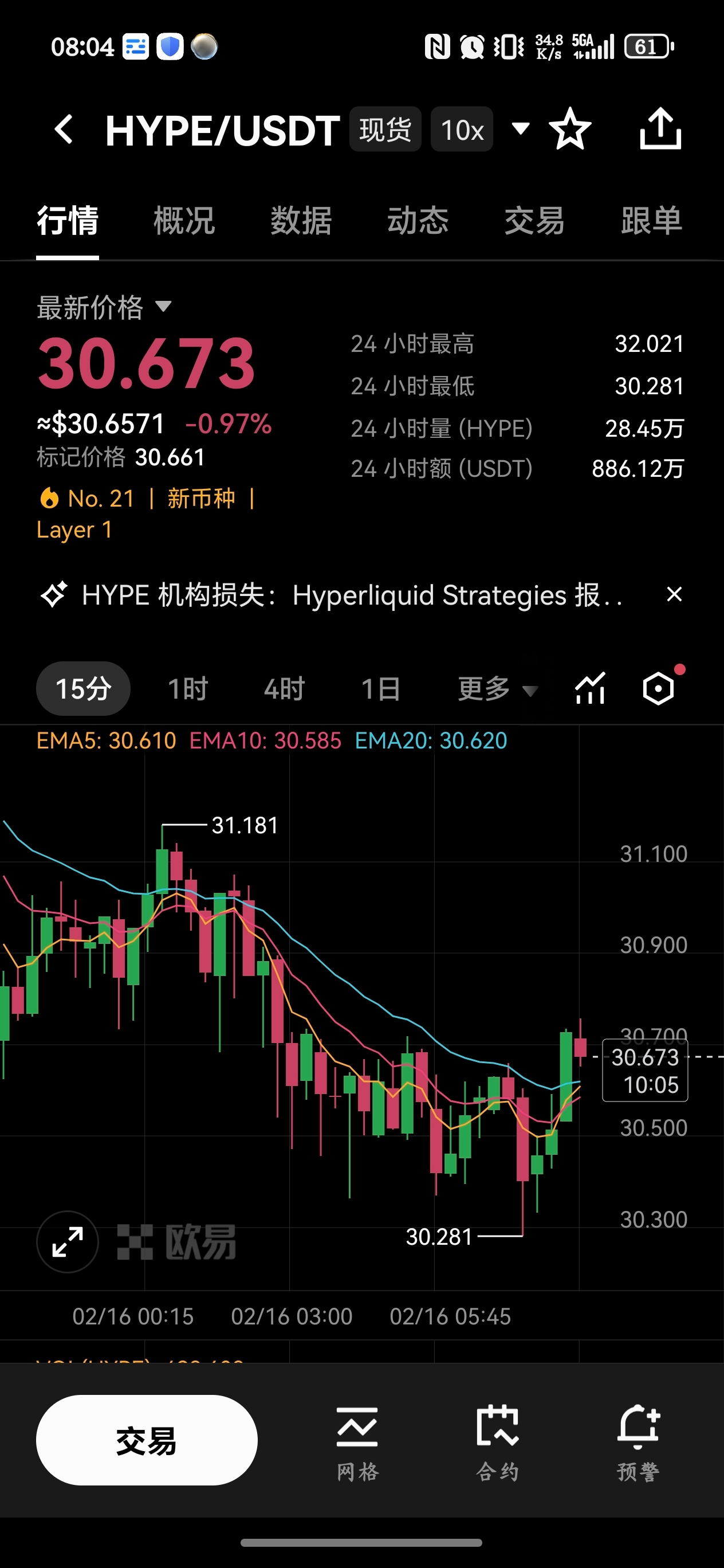 2. 若无法突破并回落至30.3 USDT(近期支撑)下方,则短期反弹可能失效。