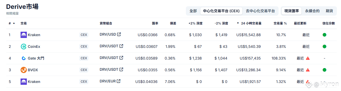 Derive本身就是交易平台,你可以打入Derive,創立交易帳戶,然後在DRV/USDC的現貨交易對賣出。