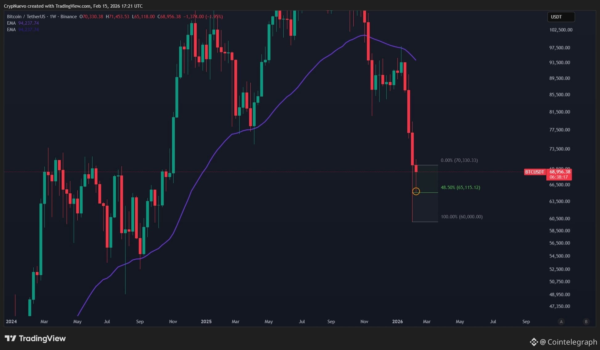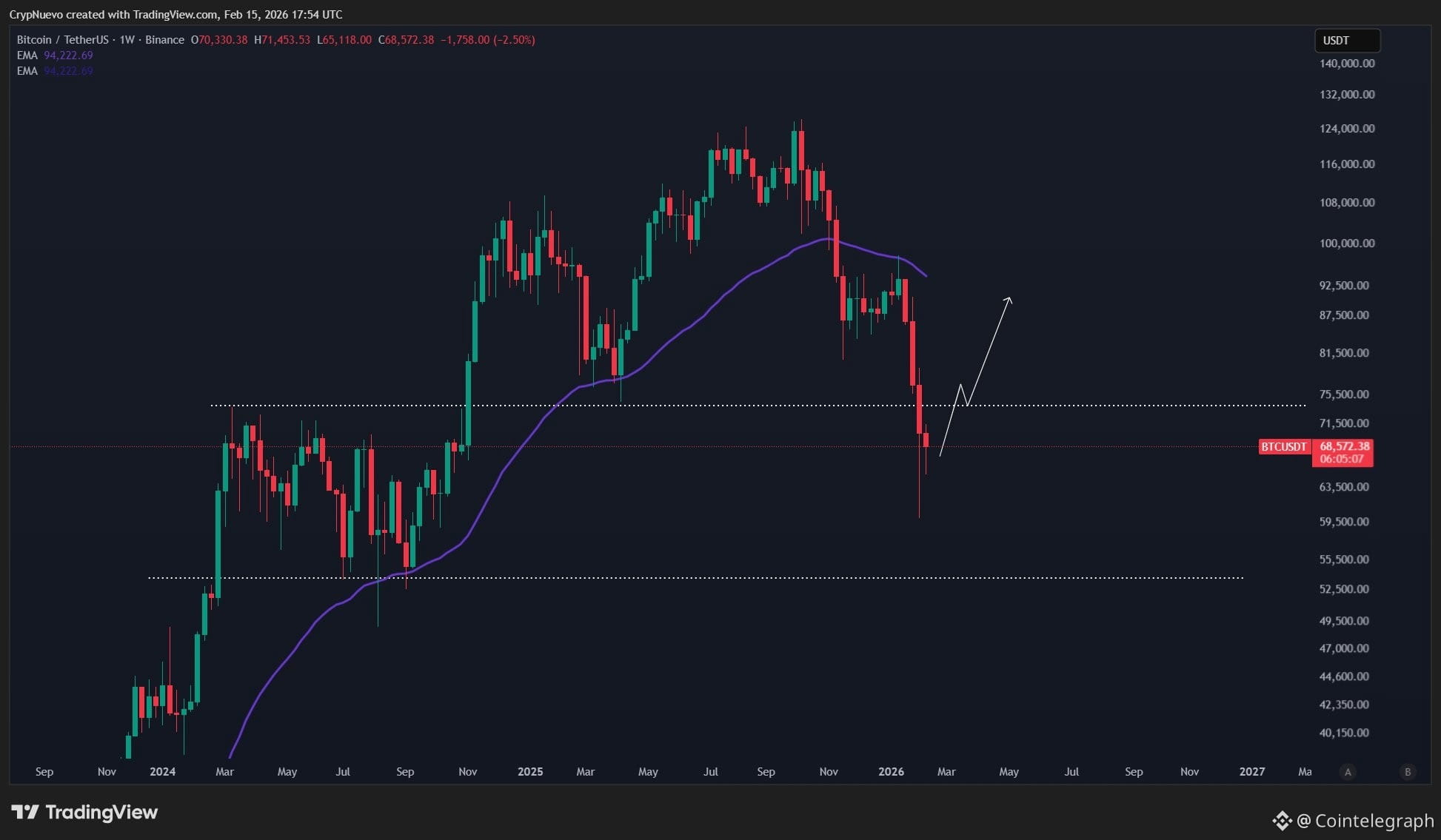 BTC/USDT one-week chart. Source: CrypNuevo/X