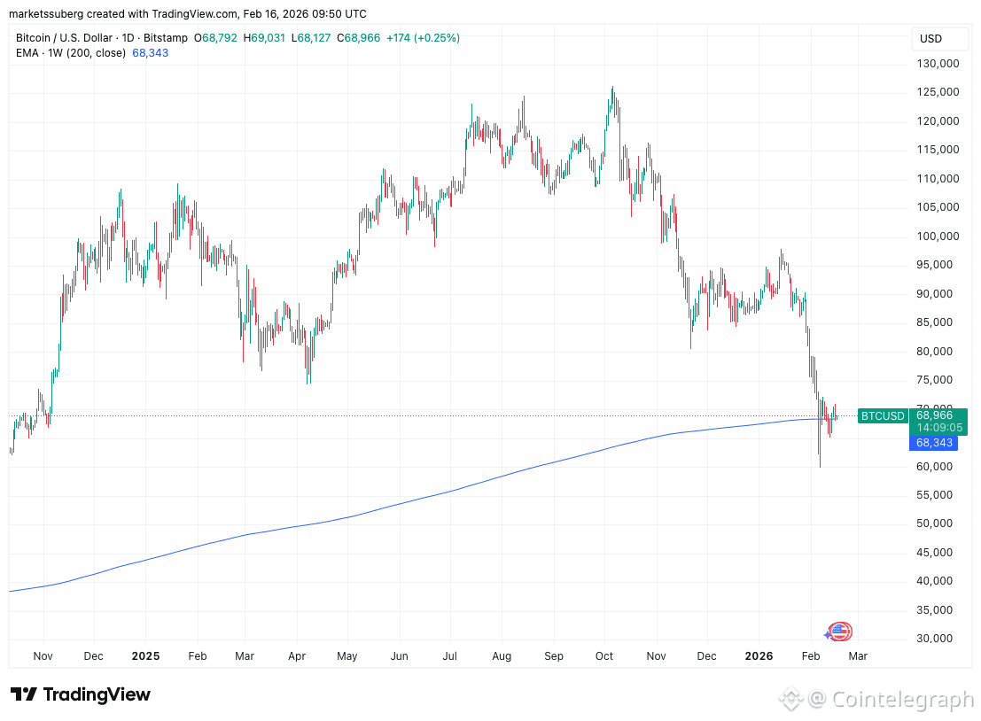 Currently at $68,343, the 200-week exponential moving average (EMA) forms one of two nearby lines in the sand for market participants. The other is Bitcoin’s old all-time high from 2021 at just over $69,000.