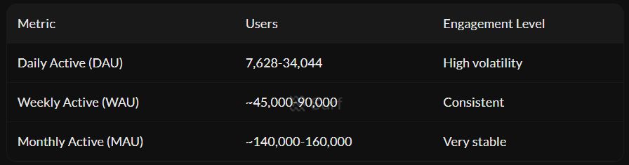 The MAU/DAU ratio of approximately 5:1 indicates strong user retention with monthly users returning weekly on average.