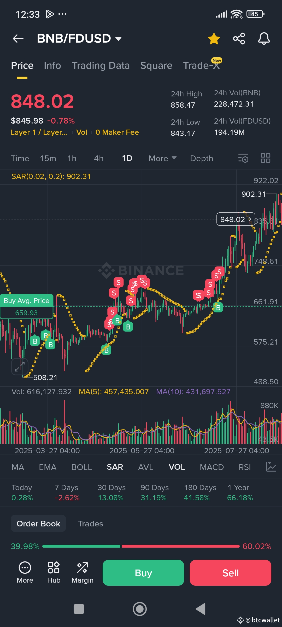 I first bought $BNB when the price was around $280. I believed in the project, so I kept holding through ups and downs. Like many long-term holders, I saw my portfolio rise and fall, sometimes with no clear profit for months.