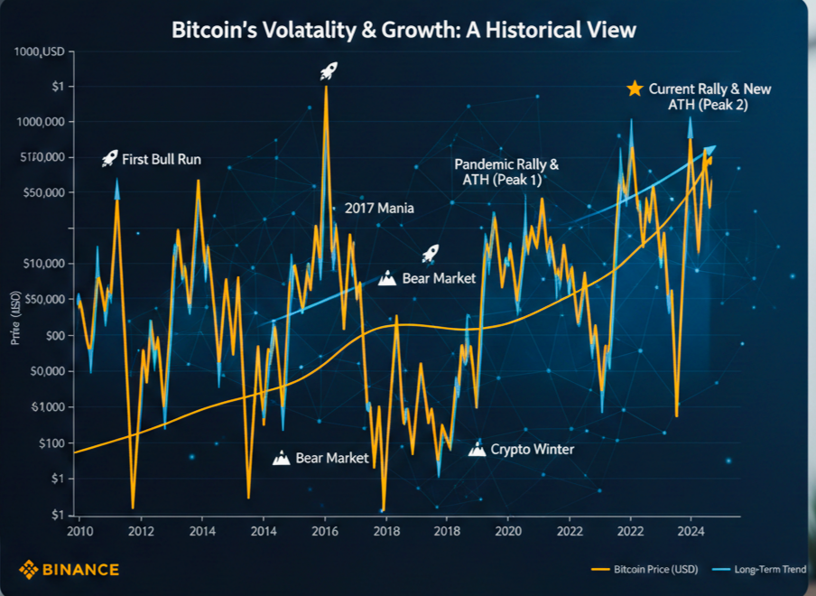 Here's an illustrative chart of Bitcoin's historical price movements, showcasing its volatility and eventual recovery: