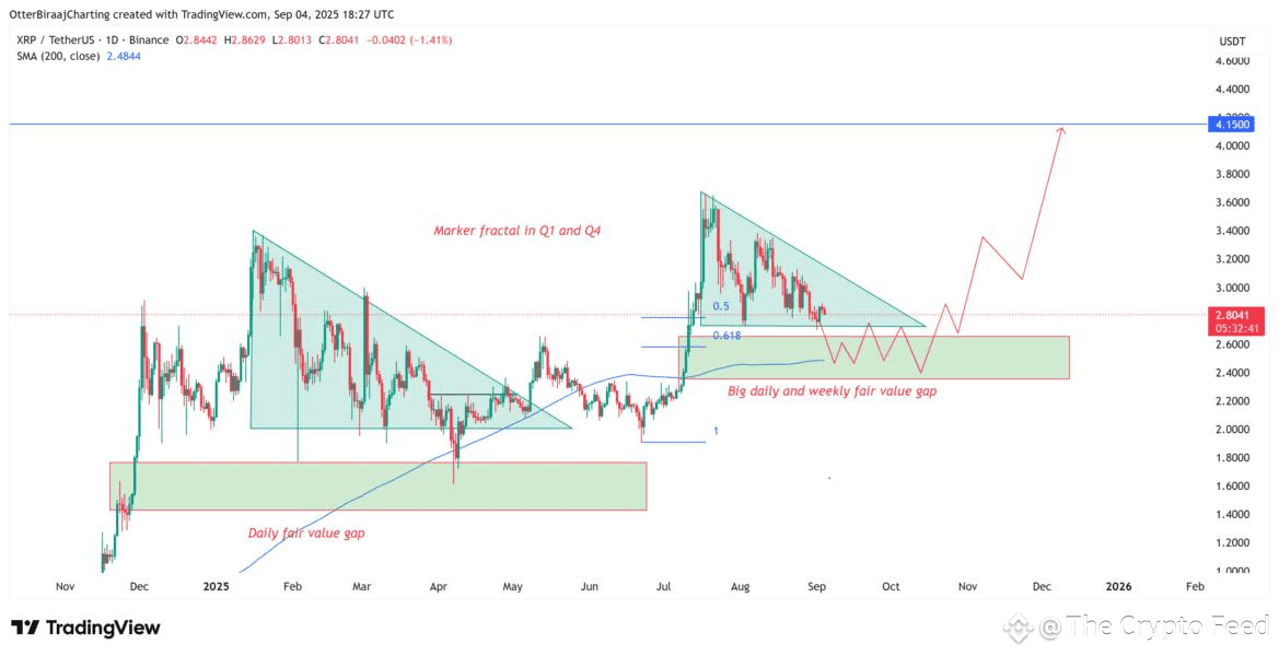 Fractal Pattern: XRP's current market structure resembles a Q1 fractal pattern that previously led to a significant breakout. If this pattern repeats, XRP could see a rebound of 60% to 85% in Q4.