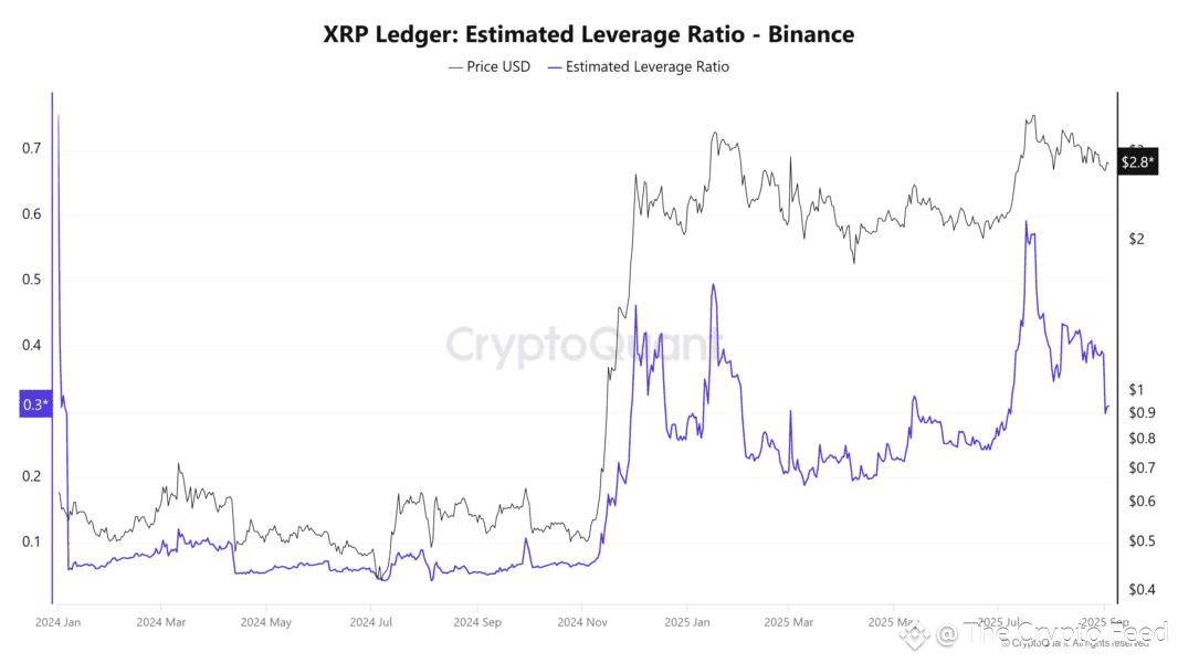 Leverage and Liquidation Risks Reduced: Onchain and futures data suggest that market risks have decreased. The open interest in XRP futures has fallen from $11 billion to $7.5 billion, and the estimated leverage ratio has reset to its yearly average. This indicates that traders are no longer "overextended," which lowers the risk of cascading liquidations that can cause sharp price drops.