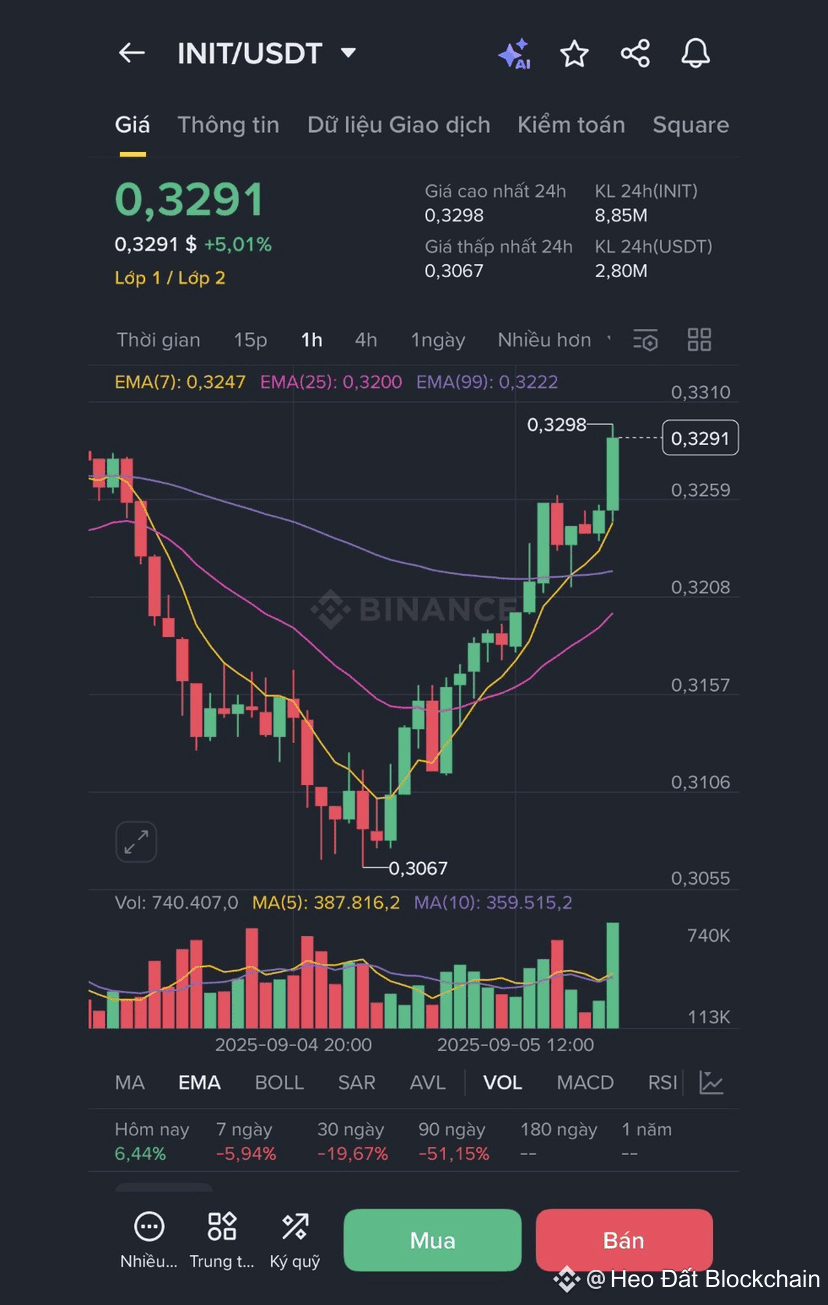 $INIT vừa hoàn thành một cú phục hồi hình chữ V đầy thuyết phục từ đáy 0.3067. Hành động giá hiện tại đang cho thấy những tín hiệu rất lạc quan: