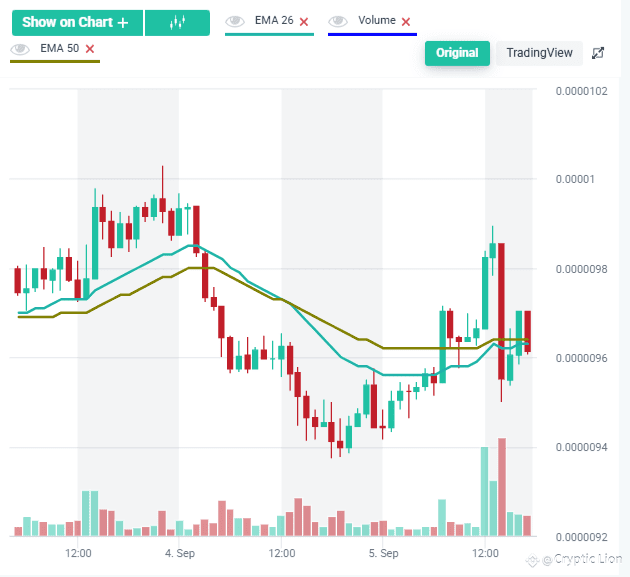 If the blue EMA 26 breaks back above the red EMA 50, traders could see this as a Golden Cross—a classic bullish signal. Combine this with the strong green volume bars recently appearing, and PEPE might be gearing up for a sharp rally.