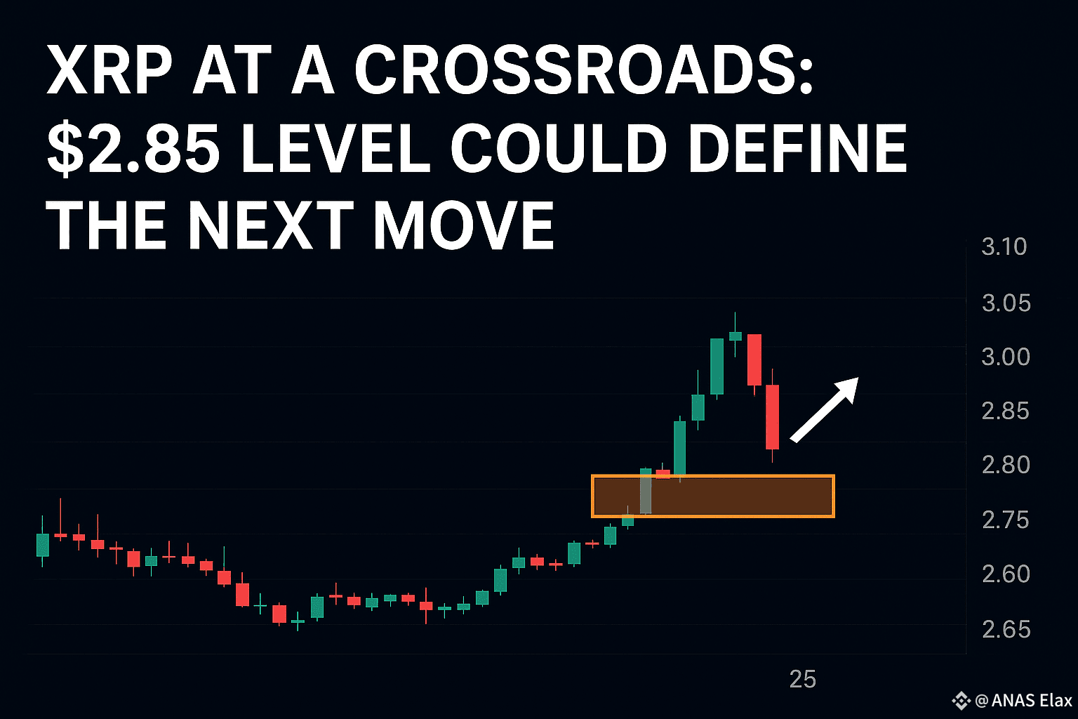 $XRP recently tested the $2.77 support zone before rebounding, a move that perfectly aligned with prior technical expectations. Now, attention has shifted toward the $2.80โ$2.85 range, which has emerged as a key battleground between bulls and bears.