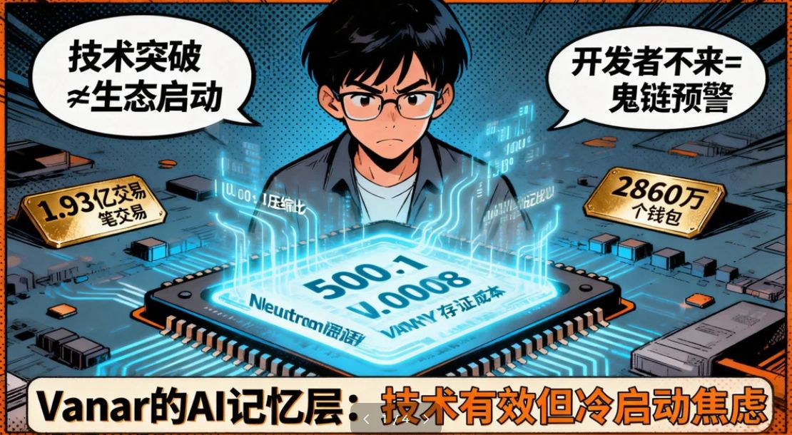 今天不吹牛,先把风险写在前面。Vanar最近很火,Neutron记忆层、1.93亿笔交易、2860万个钱包——这些数字看着确实漂亮。但我这人习惯先看问题:技术再牛,没人用也是白搭。
