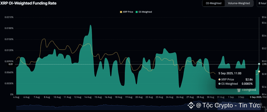 Dẫu vậy, không thể phủ nhận rằng vẫn có một tín hiệu tích cực: tỷ lệ funding rate trên thị trường phái sinh vẫn duy trì ở mức dương 0,0083%. Điều này cho thấy một số nhà giao dịch vẫn sẵn sàng chấp nhận rủi ro, với việc mở thêm các vị thế mua có đòn bẩy trên XRP. Nếu động lực này tiếp tục, nhu cầu từ thị trường phái sinh có thể là yếu tố then chốt giúp XRP duy trì xu hướng phục hồi và đạt lại mức 3 USD.