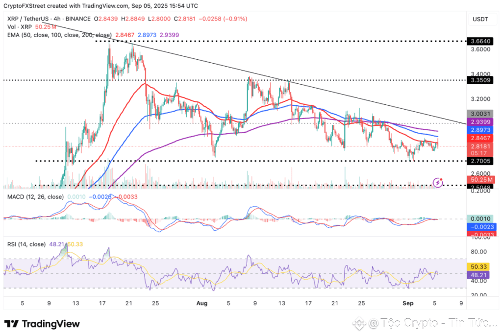 Tuy nhiên, trong trường hợp lực cầu mạnh mẽ xuất hiện tại vùng giá 2,80 USD và phe bò lấy lại quyền kiểm soát, khả năng bứt phá qua đường EMA 50 kỳ ở mức 2,84 USD trên khung 4 giờ sẽ mở ra cơ hội cho một đợt tăng giá tiếp theo, với mục tiêu là tái thiết lập ngưỡng tâm lý 3 USD – một cột mốc quan trọng trong hành trình phục hồi của XRP.