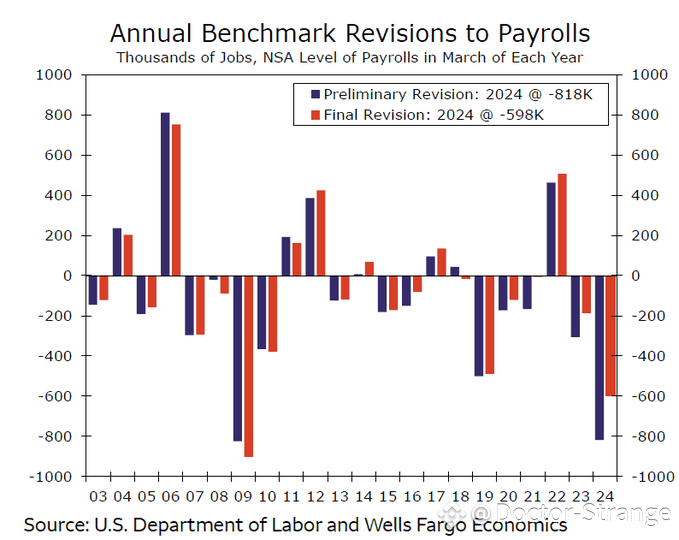 This was when the BLS revised 12-month job growth down by a massive -818,000 jobs.