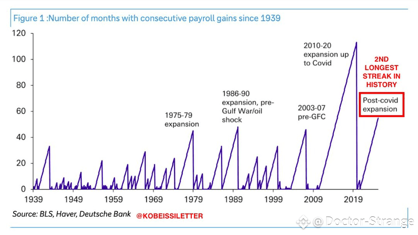 The post-COVID expansion period saw 60+ months of consecutive payroll gains, the 2nd longest streak in history.