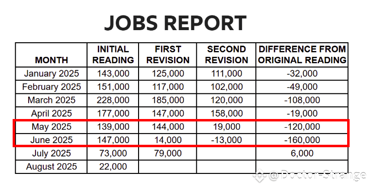 After a SECOND data revision, the US went from "adding" 147,000 jobs in June 2025, to LOSING -13,000 jobs.